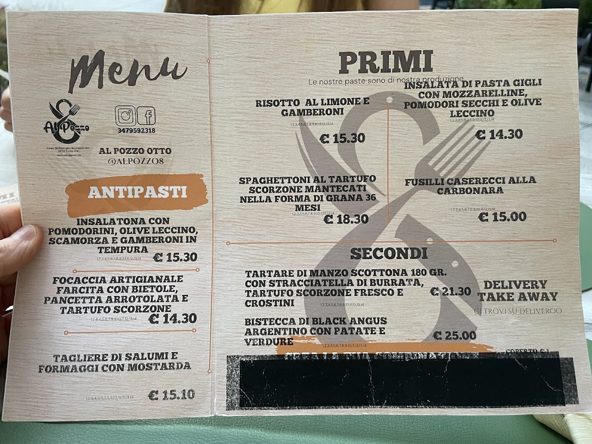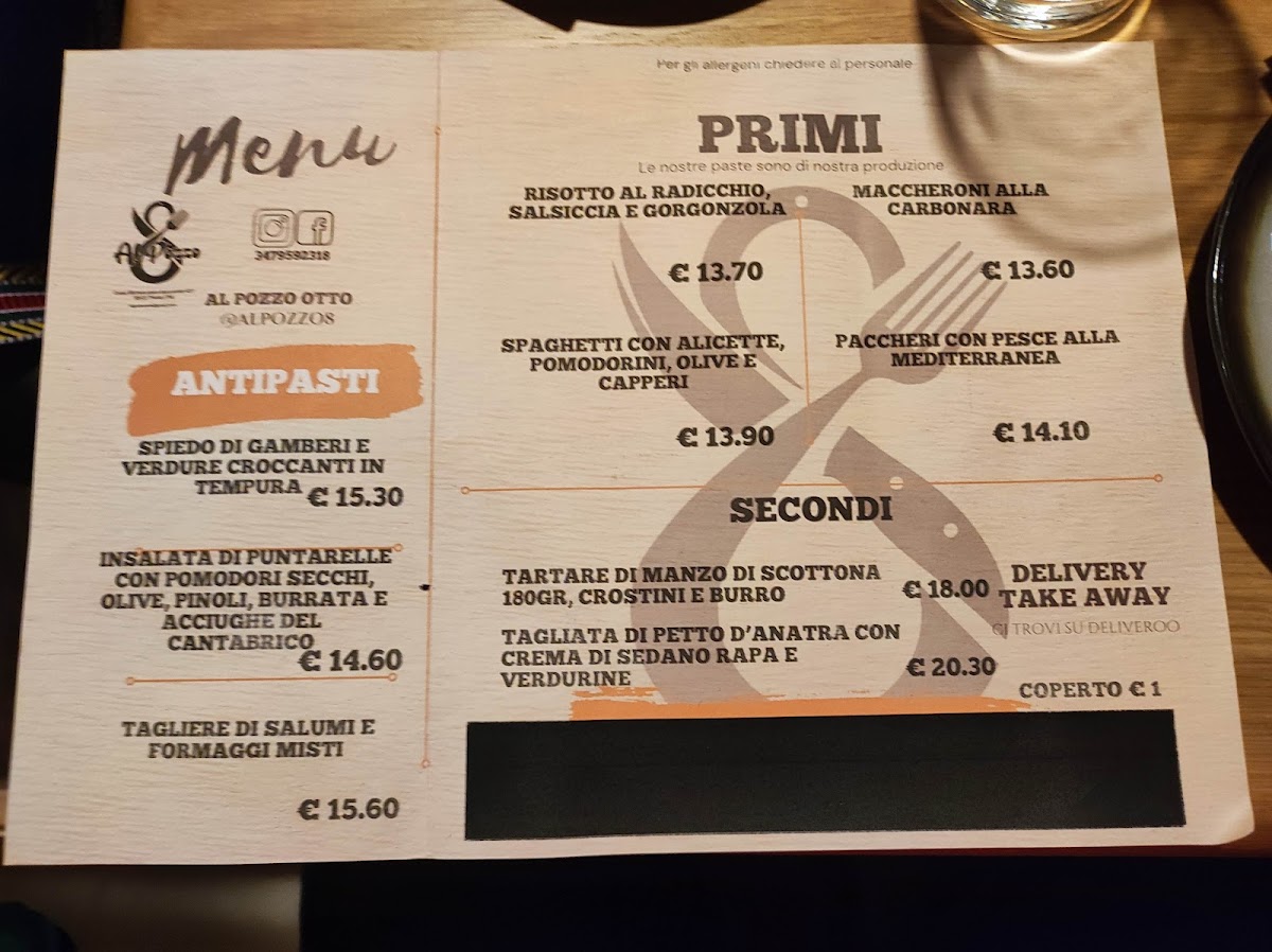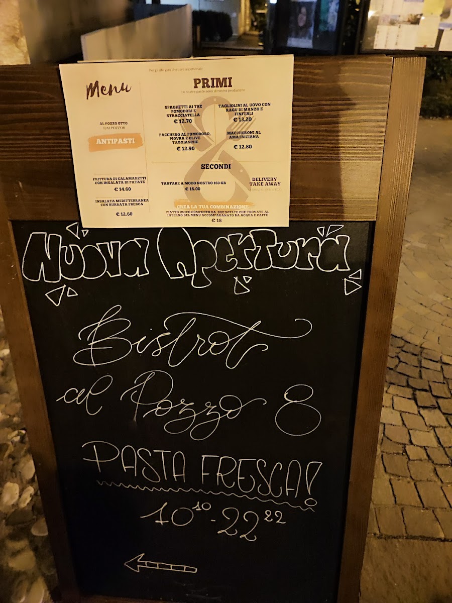 Al Pozzo 8 offers a thoughtfully curated menu focusing on refined yet approachable Italian cuisine. The selection is concise, featuring a few carefully prepared primi and secondi dishes that highlight fresh, local ingredients and traditional techniques with a modern touch.